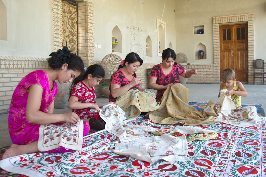У узбеков развито народное искусство: вышивка, гончарство, чеканка медной посуды, резьба по дереву и камню. Популярны народный театр, цирк, кукольники и канатоходцы.