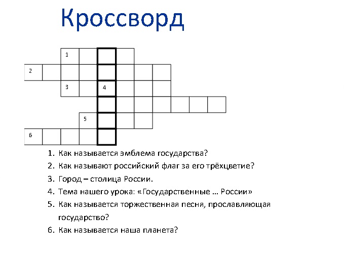 Сейчас мы с вами вместе разгадаем кроссворд «Символика нашей страны»
