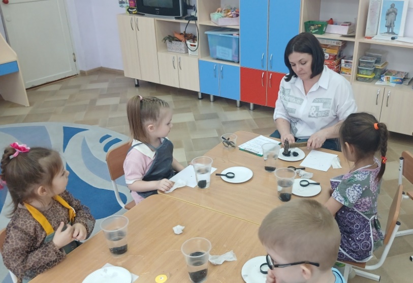 Воспитатель: Хотите узнать о нём побольше? Я предлагаю вам изучить это сокровище. Проходите к столам — начинаем наши опыты!