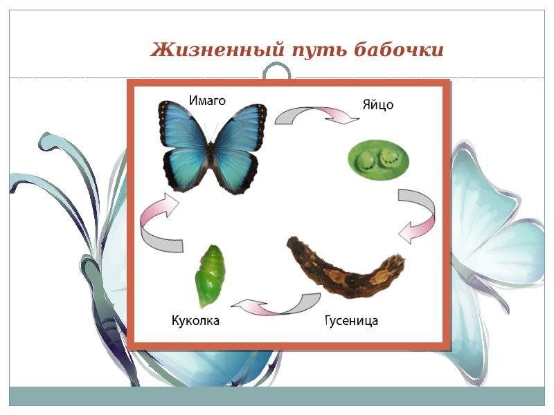 - Ещё вам задание: расскажите про жизнь бабочки по схеме (работа со схемой):