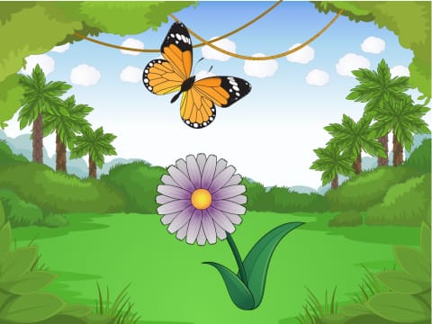- Где летает бабочка? (Бабочка летает над цветком)