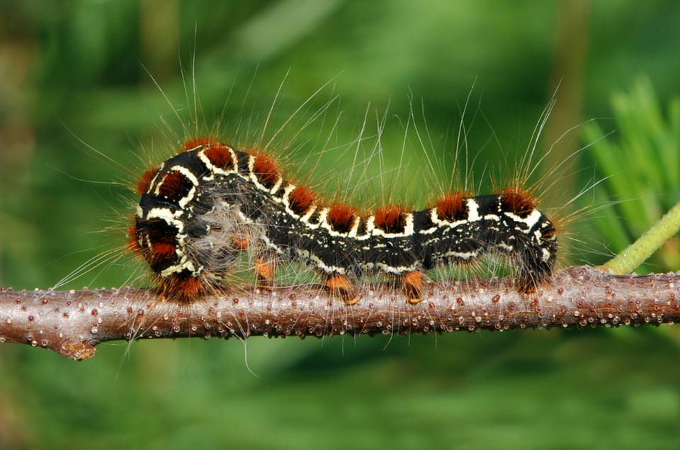 Гусеница питается листьями и растёт