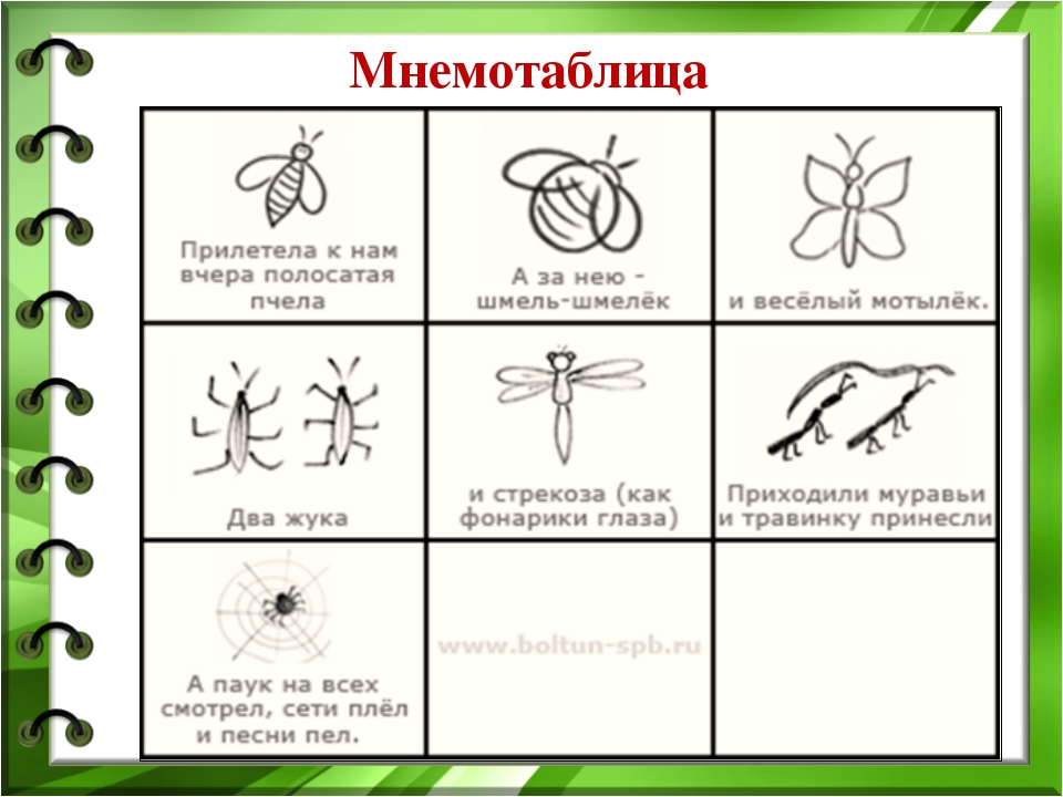Ребёнок: У всех насекомых 6 ног, усики, крылья, тело состоит из трёх частей: голова, грудь, брюшко.