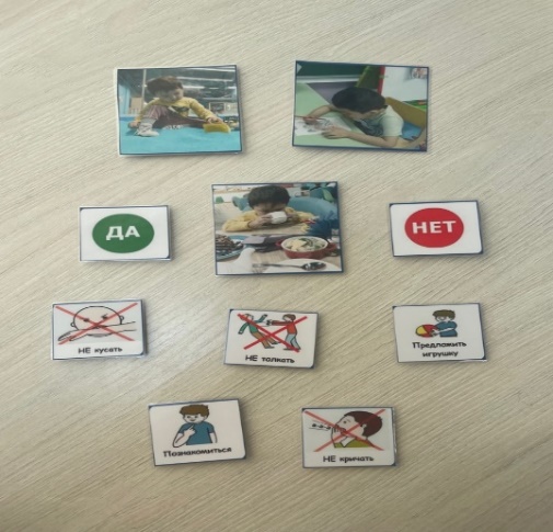 педагог может сосредоточиться на определенной социальной истории и работать с фотографиями на эту тему, либо с применением карточек PECS;