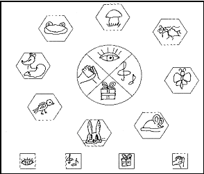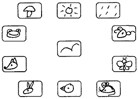 1. Пиктограммы слов-предметов расположены по кругу.