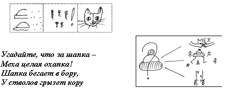 Особенность приема – применение не изображения предметов, а символов. Символизм характерен для детского рисунка в дошкольном возрасте и не вызывает трудностей в восприятии мнемотаблиц.