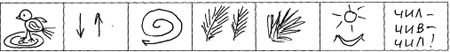 Взрослый предлагает две пиктограммы “воробей” и “ползает”.