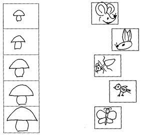 Соотнести по величине грибы и героев сказки.