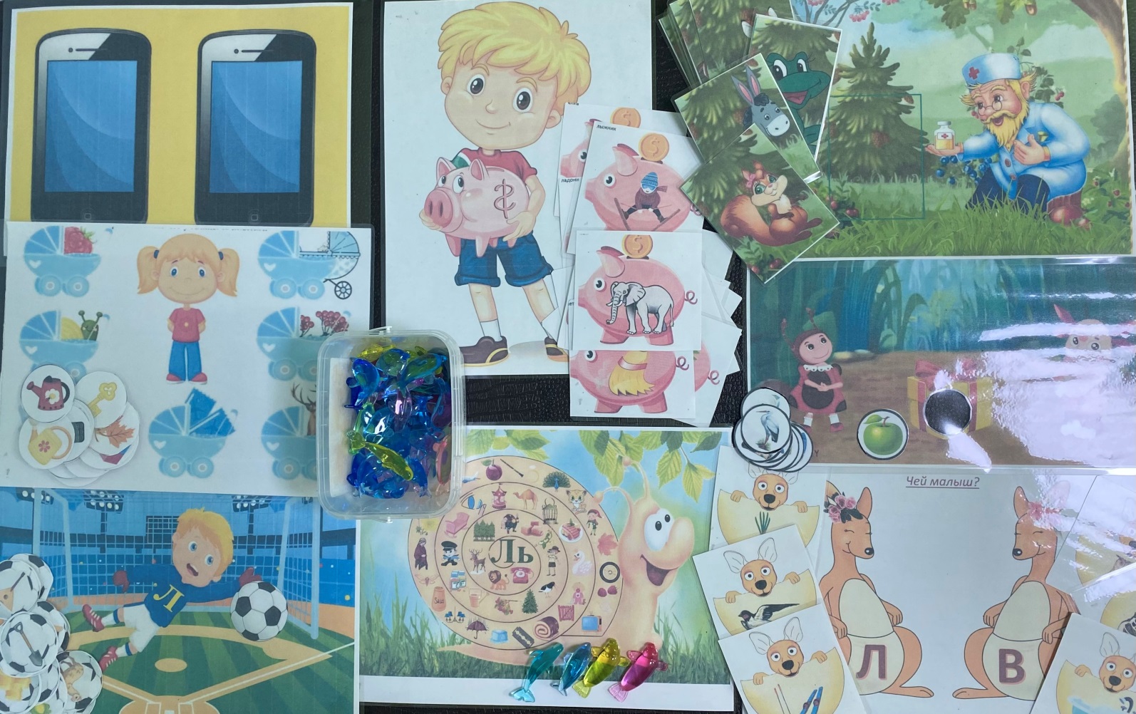 Игры:«Что в телефоне?», « Что лежит у Лены в коляске?», «Гол! Игра в футбол», «Что лежит у Леши в копилке?», «Улитка», «Кого лечит Айболит?», «Подарок от Лунтика», «Кто сидит у кенгуру?»