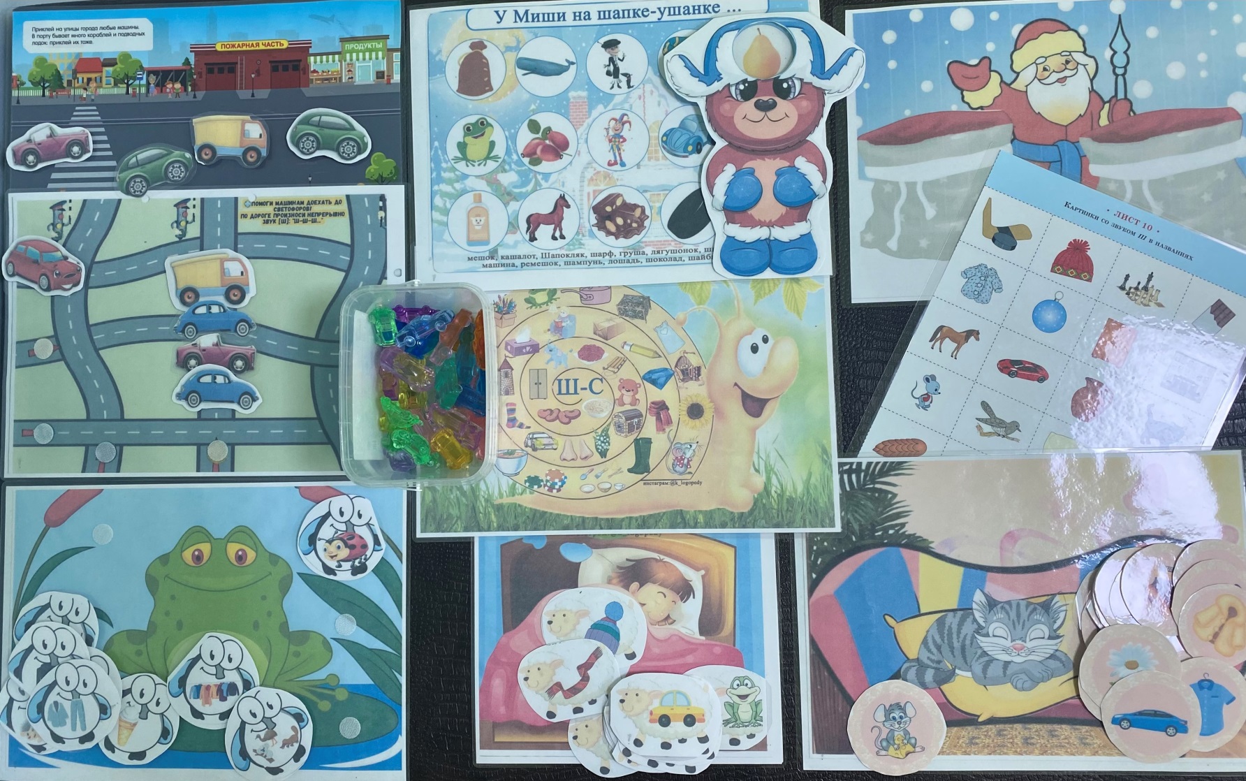 Игры:«Машины в городе», «Лягушка и мошки?», «У Миши на шапке-ушанке», «Улитка», «Кого видит Шура во сне?»,