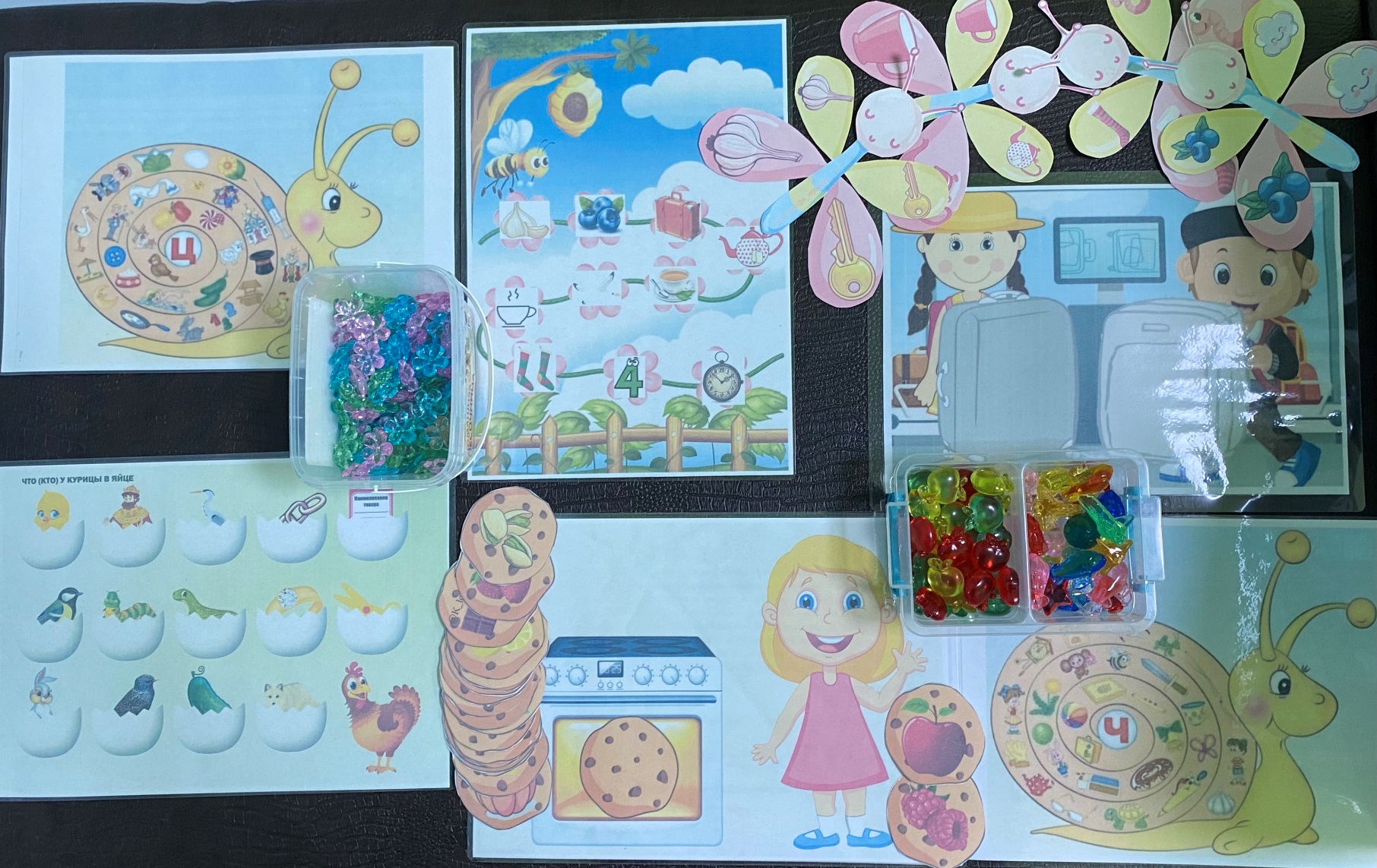 Игры:«Улитка «Ц», «Кто, что у курицы в яйце?», «Пчелка Майя несет…», «Печем печенье», «У бабочки на крыльях», «Что лежит в чемодане?, «Улитка «Ч».