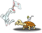 Для этой игры понадобятся картинки с изображением животных, транспорта, людей или насекомых. Всё зависит от Вашей фантазии. Показываем ребёнку две картинки и задаём вопрос: "Кто кого обгонит?" Заяц и черепаха… (Заяц обгонит черепаху). Гусеница и змея… (Змея обгонит гусеницу). Поезд и самолёт… (Самолёт обгонит поезд). Мотоцикл и велосипед… (Мотоцикл обгонит велосипед). Человек и машина… (Машина обгонит человека). |