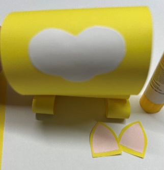 Из розовой бумаги: Уши внутренние- 1.5см на 2см. 2. Ножницами вырезаем детали. Уши вырезаем произвольно в форме треугольника |