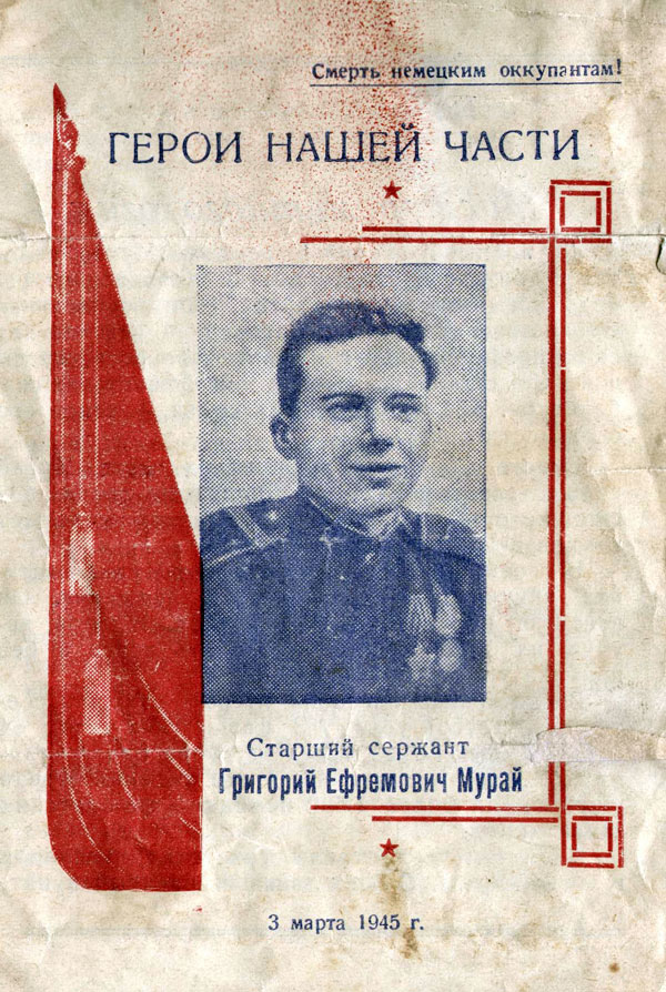 В другой раз досталось немцам, которые неожиданно ночью начали обстрел с воздуха. Быстро оценив ситуацию, Григорий Мурай приказал вытащить внутренности погибшей лошади, сам забрался внутрь и начал вести прицельный огонь. Враг долгое время не мог понять, откуда стреляют, и бил наугад.