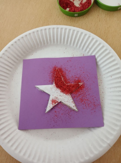 Шаг 4. Берем блестками и посыпаем ими звезду