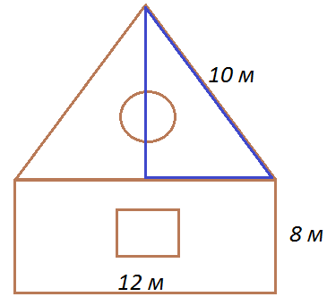 Определите высоту дома, ширина фасада которого равна 12 м, высота стен равна 8 м, а длина ската крыши равна 10 м.