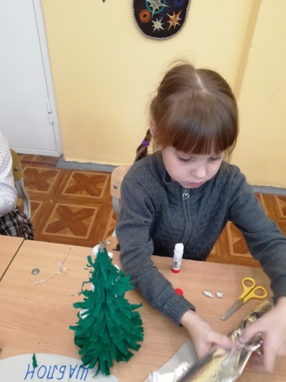 5 этап – декорируем елочку разными материалами (фольга, бусины, стразы, блестки).