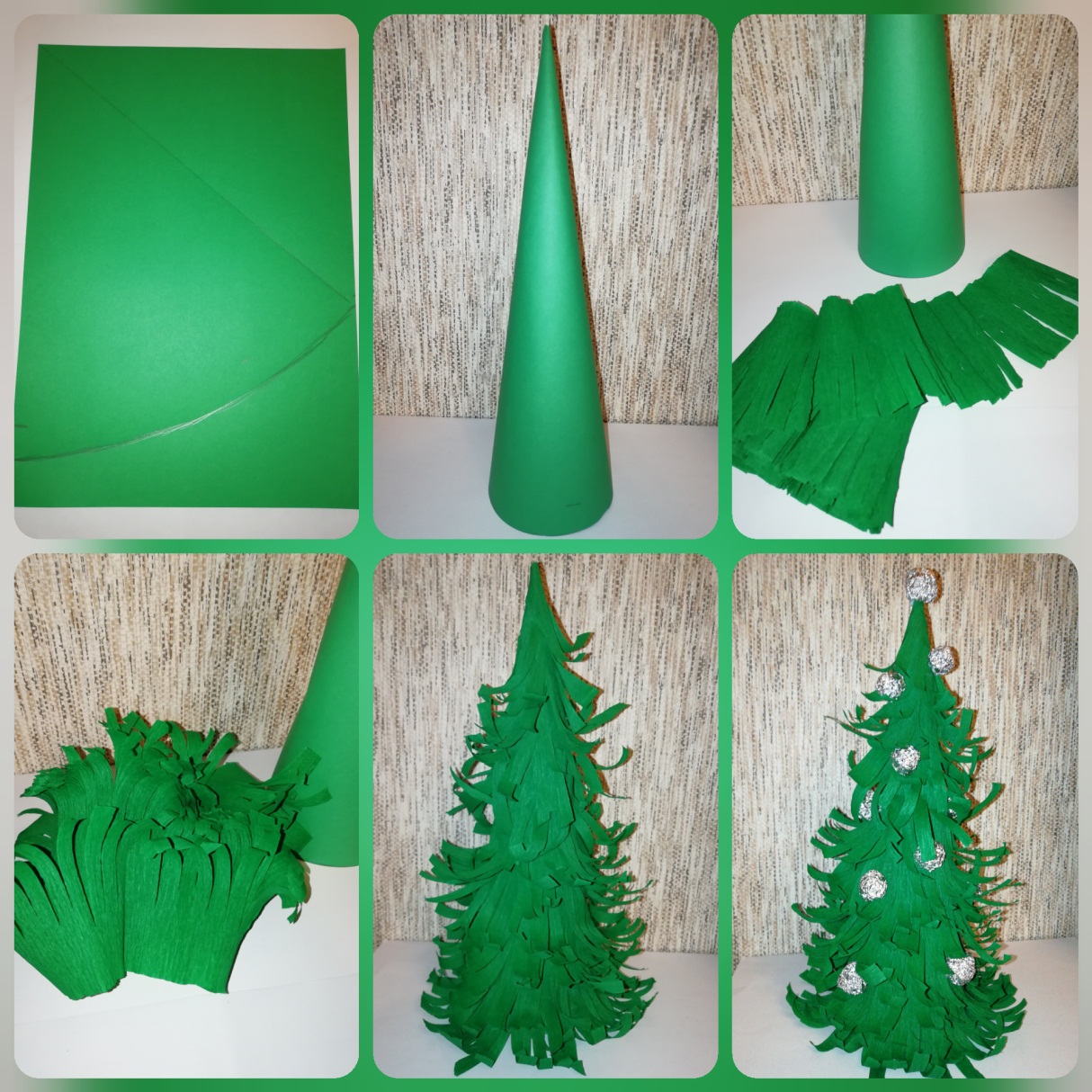 Цель: Изготовление новогоднего сувенира «Елочка» из цветной крепированной бумаги.