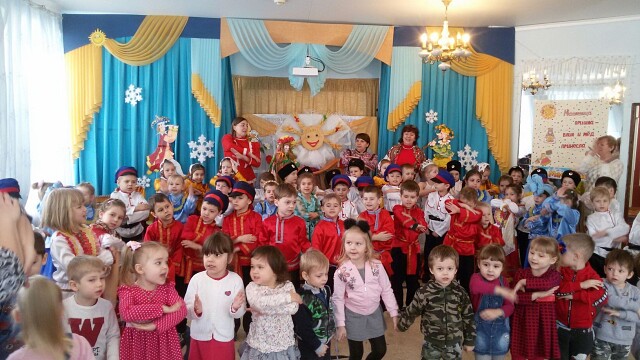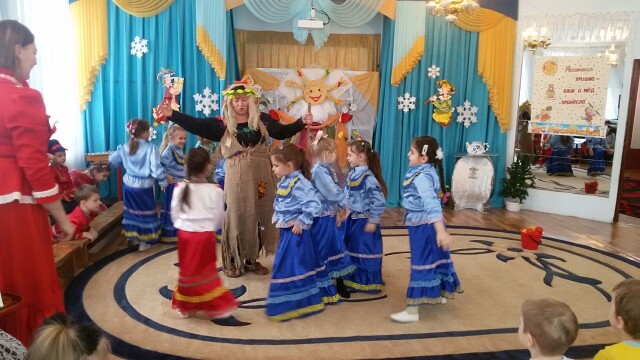 (Детям вручают обережные куколки Масленки. В группах проводится чаепитие с блинами).