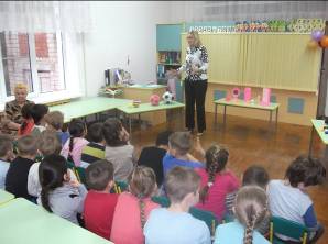 Логопед предлагает детям, сидящим в первом ряду, назвать, какие они ещё знают игрушки, а детям, сидящим во втором ряду, назвать, какие они знают предметы обстановки, мебели.