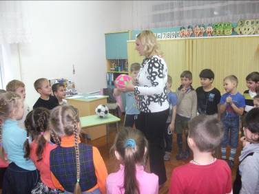 Материал: мячи разные по качеству и по размеру, игрушки, мебель детская.