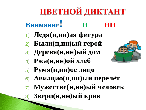 3. «Цветной» диктант (Презентация - слайд)