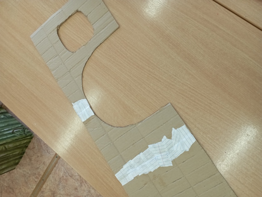 Из упаковочного картона сделать кресло для Ежика. Из кусочка ткани сшить подушечку на кресло.