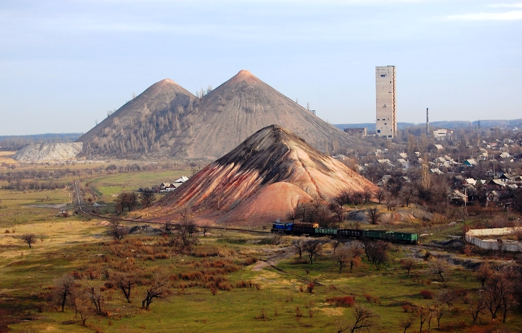 отвалы пустой породы (терриконы) – в местах добычи угля;