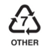 № 7 (O или OTHER) – поликарбонат, полиамид и другие виды пластмасс. В данную группу входят пластмассы, не получившие отдельный номер. Из них изготавливаются бутылочки для детей, игрушки, бутылки для воды, упаковки. При частом мытье или нагревании выделяет бисфенол А — вещество, которое ведет к гормональным сбоям в организме человека.
