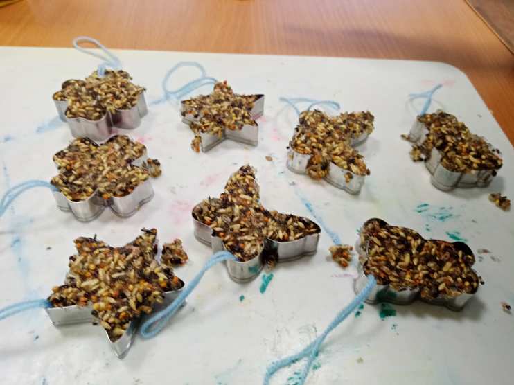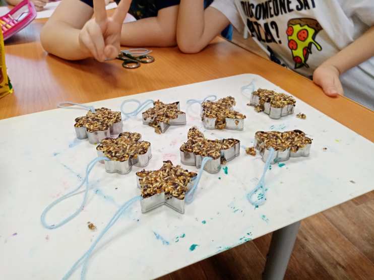 В нашей старшей группе "Солнышко" мы реализовывали проект "Птичья столовая". Целью этого проекта было: воспитывать защитников природы, дать экологические знания, научить быть милосердными. В ходе этого проекта я проводила с детьми беседы о зимующих птицах и как мы можем им помочь. Также в нашей группе прошла выставка "Каждой пичужке по кормушке". На заключительном этапе нашего проекта мы развесили наши кормушки и провели акцию "Приглашаем птичек на обед". А обед ребятки приготовили своими руками.