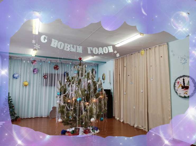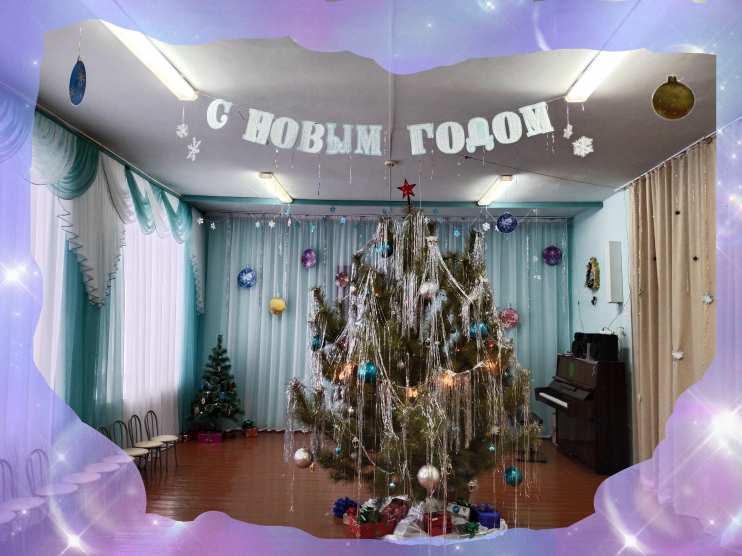 Тема этого года "Новогодние игрушки". Минимум украшений, больше свободного пространства. Преобладают серебристо-голубые цвета (в нашем зале занавески белого цвета и цвета морской волны). Яркими пятнами выделяются ёлочки. Центральная - живая елка, украшенная игрушками голубого и серебристого цвета, плюс серебристый дождик, мерцающий при праздничном освещении гирляндами. Две искусственные ёлочки по углам центральной стены, украшенные деревянными игрушками и серебристыми и голубыми бусами. Ёлочки у стены добавляют глубины и яркости музыкальному залу. И конечно, это атрибут новогоднего утренника, под который можно положить подарки и сюрпризы для детей.