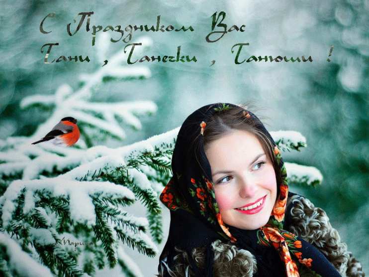 Я поздравляю всех Татьян с их именинами! Желаю им быть всегда красивыми, нежными, любящими и любимыми! Пусть ангел-хранитель никогда не оставляет вас. Желаю, чтобы его присутствие создавало в вашей душе ощущение счастья, теплоты и защищенности. Желаю гармонии, душевного спокойствия и благополучия во всём. С праздником!