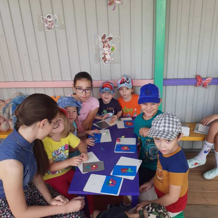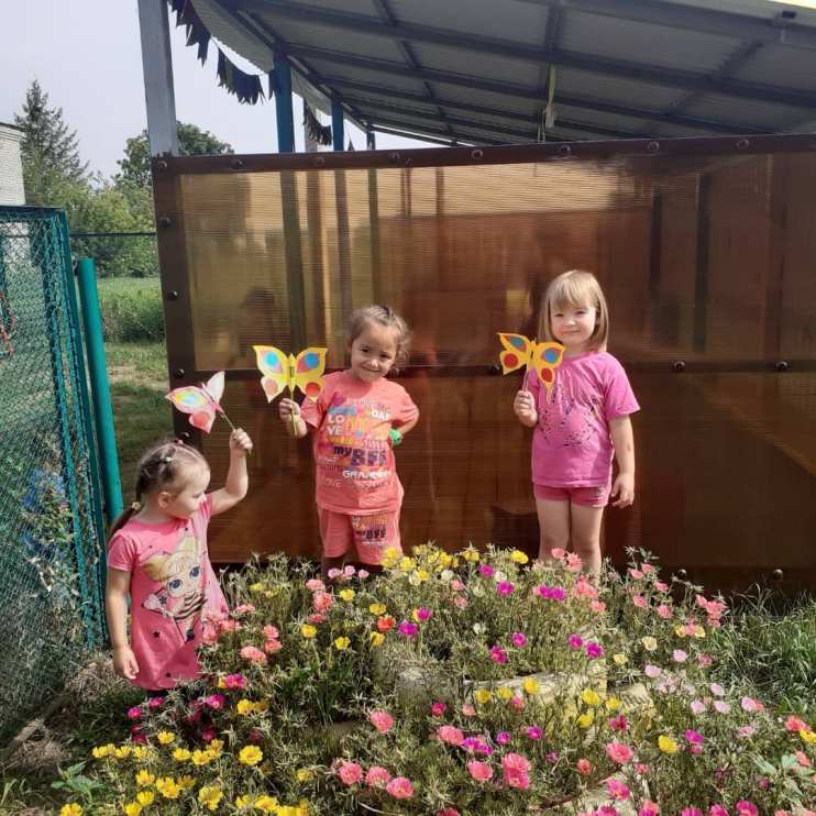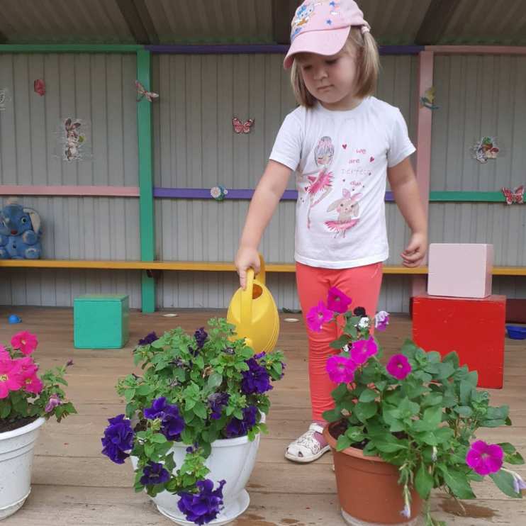 В течение летнего периода знакомились с цветами на нашем участке. Ухаживали за ними и поливали. Знакомились с миром прекрасного. Читали стихи: