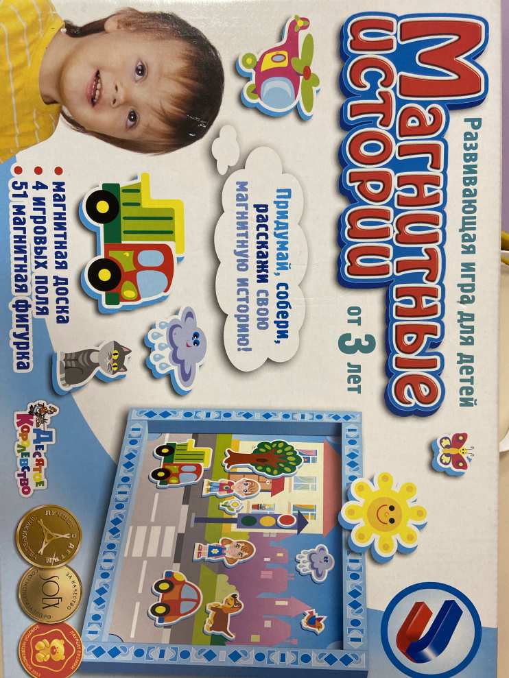 Один из основных разделов обучения в детском саду — развитие речи. Программой детского сада предусмотрена система занятий по обучению рассказыванию. Обучая ребенка рассказыванию, то есть самостоятельному связному и последовательному изложению своих мыслей, педагог помогает ему находить точные слова и словосочетания, правильно строить предложения, логически связывать их друг с другом, соблюдать нормы звуко- и словопроизношения. В этом мне помогает игра «Магнитные истории» — это увлекательная развивающая игра, которая научит детей фантазировать и рассказывать интересные тематические рассказы.