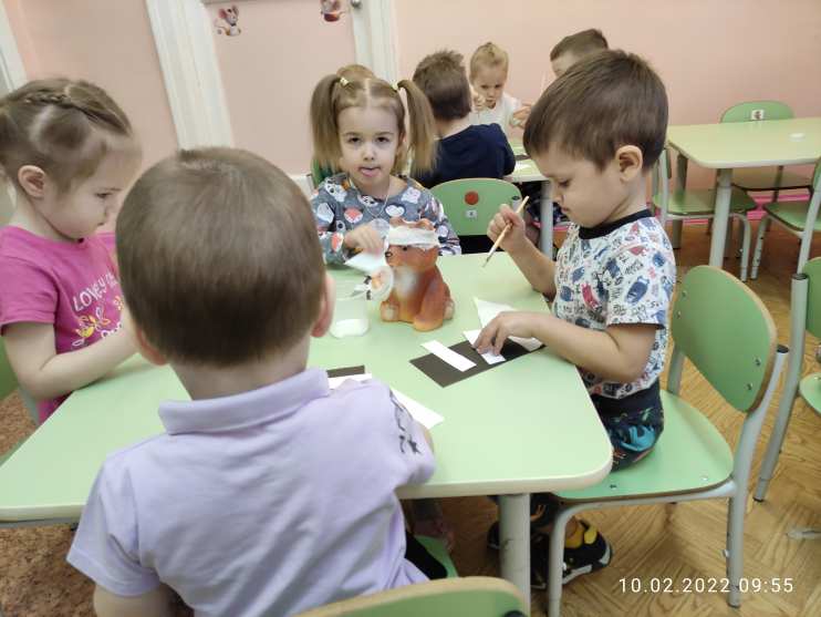 - закреплять навыки работы с клеем, наклеивания изображения на лист бумаги;