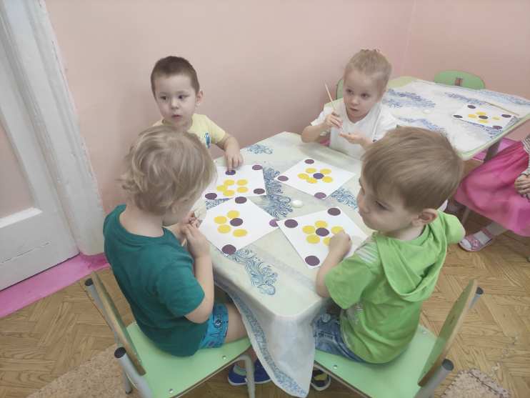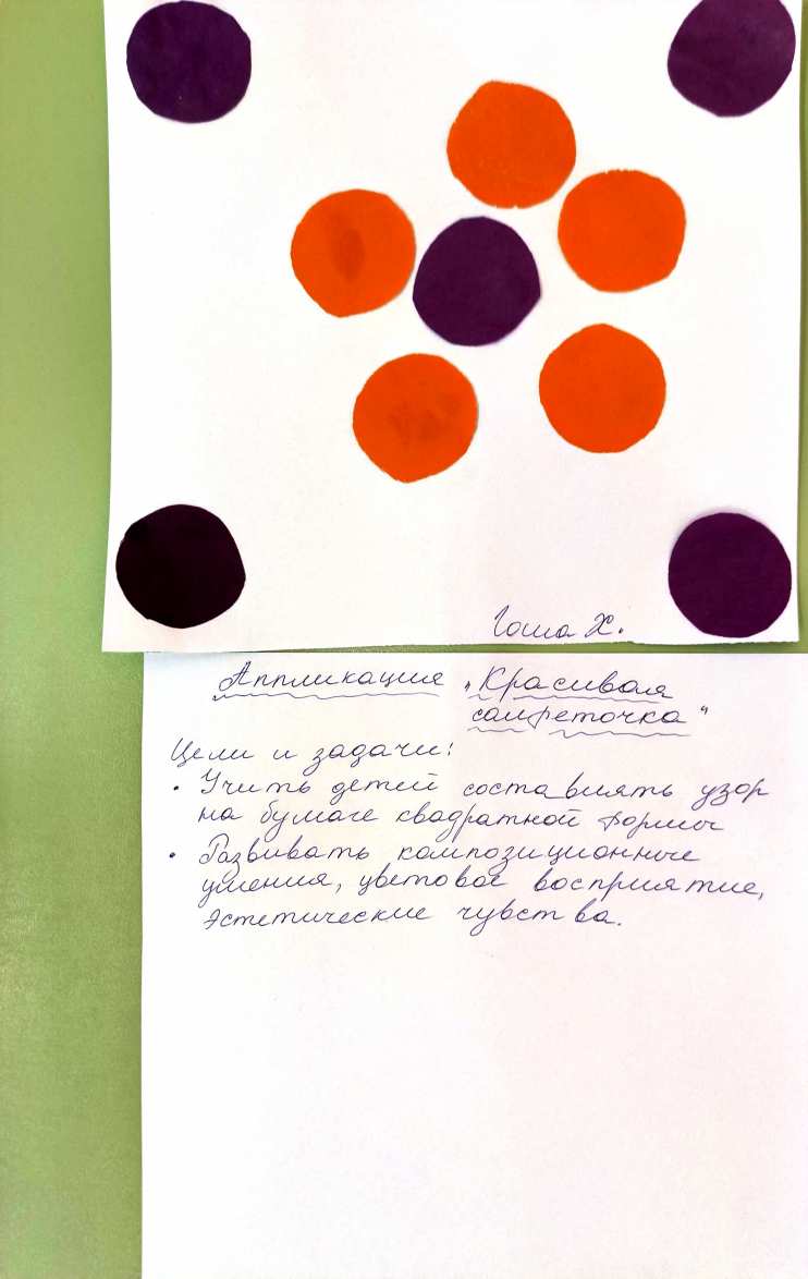 - учить детей составлять узор на квадрате, заполняя элементами: середину – большим кругом, углы - кругами поменьше, стороны - маленькими кругами;