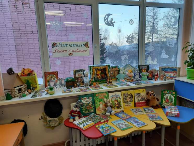После изучения тем в средней логопедической группе о диких и домашних животных наступила неделя знакомства детей со сказками о животных. Читали русские народные и авторские сказки, слушали аудиоверсии сказок, рассматривали иллюстрации, показывали настольный и теневой театр, рисовали сюжеты из сказок. Из дома дети принесли любимые книги со сказками. Так появилась выставка "Сказки о животных".