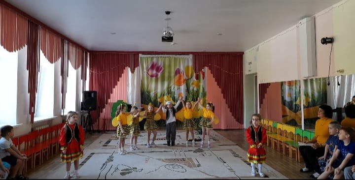 Ребята очень старались: разучивали слова к сказке, движения к башкирской народной мелодии, работали над сценической речью, подбирали костюмы. Родители молодцы — постарались приобрести костюмы пчелок и подарить нашему детскому саду. Ведь театральная деятельность в детском саду должна развиваться прежде всего!