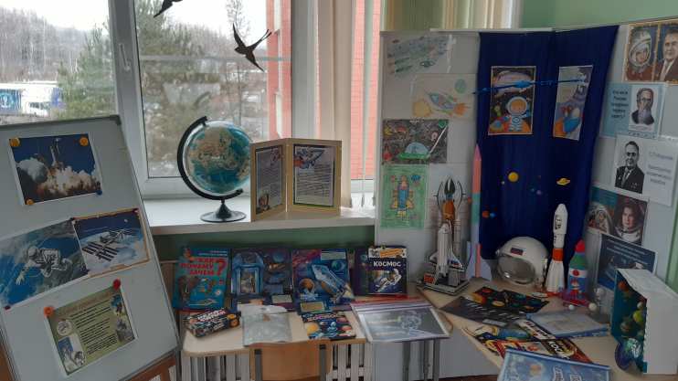 Дети с удовольствием рассматривают макеты космических ракет, планеты Солнечной системы, экспонаты, рисунки, книги, энциклопедии о космосе и играют в настольные игры.