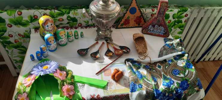 Сначала воспитатели с родителями общими усилиями собрали в будущий музей предметы русского быта: самовар, расписную посуду, расписной платок, музыкальные инструменты, матрёшку и т.д. Дети, которые захотели быть экскурсоводами, встречали гостей мини-музея в народных костюмах и с караваем. Затем каждый рассказывал об отдельном неофициальном символе России.