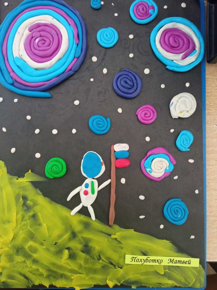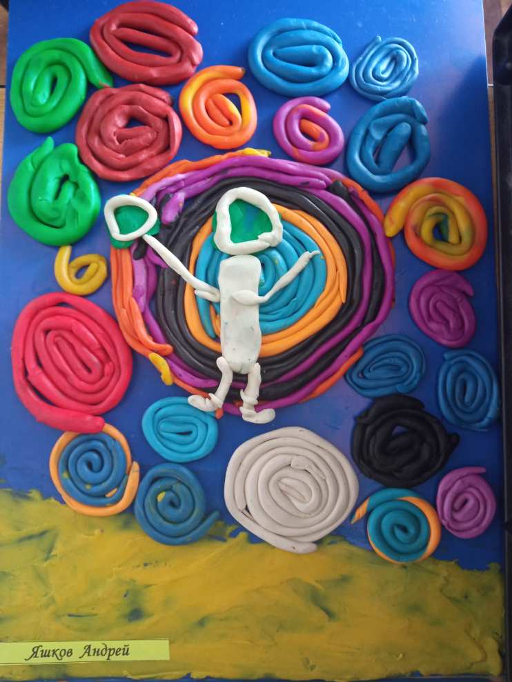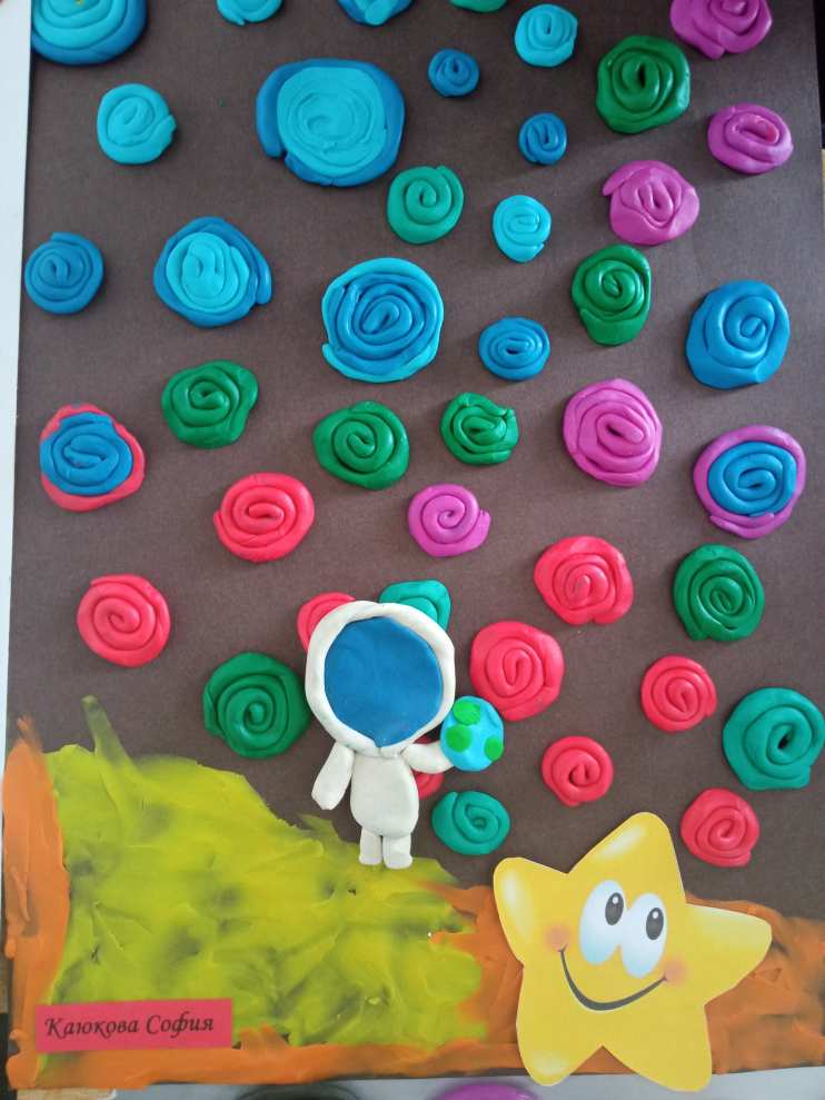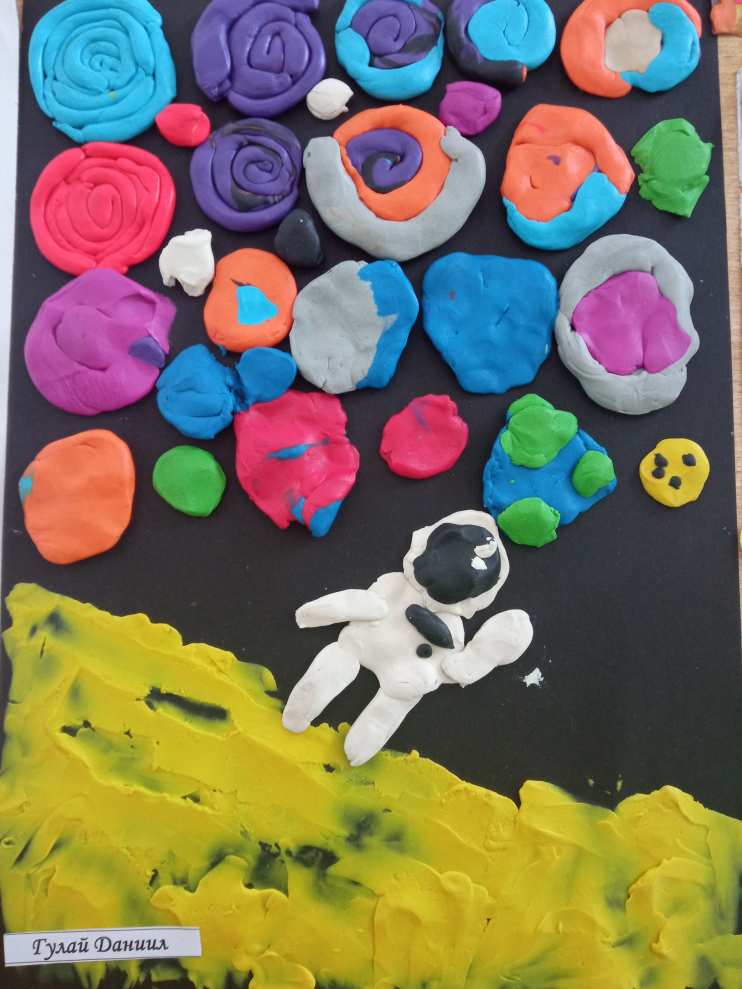 День космонавтики, как и любая важная дата календаря, отражается в учебно-тематическом плане педагогов. Уроки и занятия, посвящённые Дню космонавтики, имеют свою специфику. Они направлены на то, чтобы дети поближе познакомились с профессией космонавта, запомнили основополагающие факты из истории покорения вселенной. Интерес к космосу, его таинственная красота вызывают желание творить... Творить из разных материалов. Наши поделки сделаны ребятами в технике пластилинография.