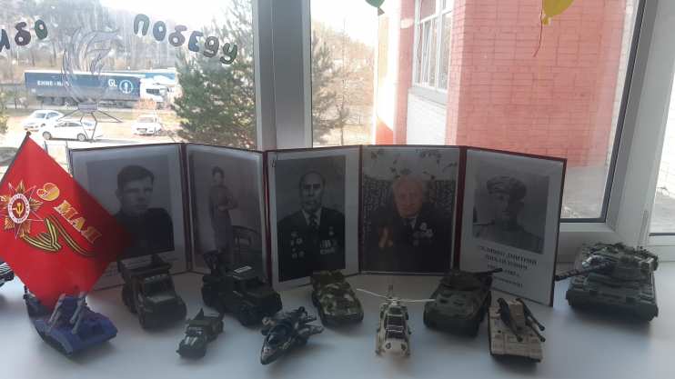 У нас в группе был организован мини-музей, посвященный дню Великой Победы - 9 мая. Для организации мини-музея мы привлекли родителей и детей. Экспонаты музея: фотографии прабабушек и прадедушек, медали и ордена, письма с фронта, атрибуты военных лет. А также была организована выставка военной техники.