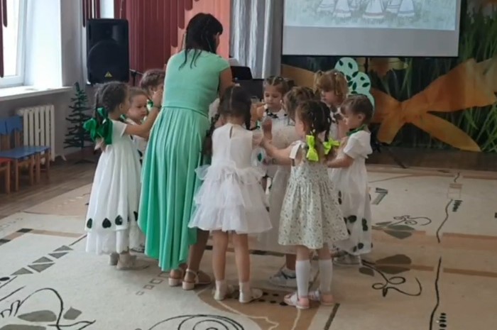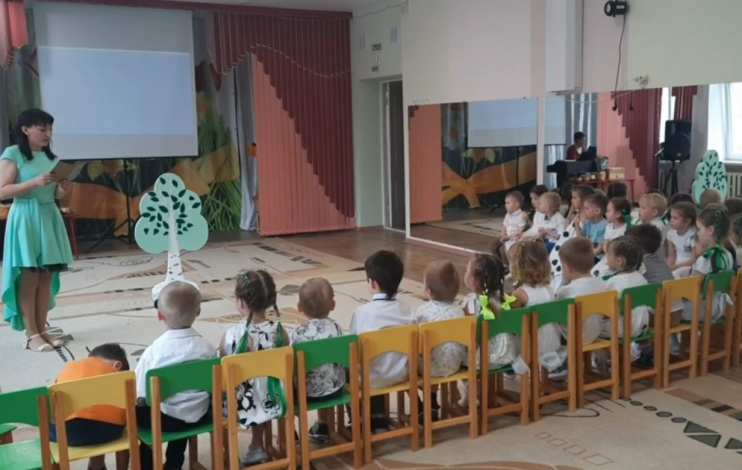 Берёза — символ русской природы! Её длинный, гибкий ствол покрыт опрятной белой одеждой, её яркая кудрявая зелень весною первая радует наши глаза. Берёзу можно сравнить с нежной и красивой девочкой в белом платье. На празднике наши девочки исполнили танец «Берёзки». Все вместе спели песню о берёзке, рассказали стихотворение Александра Прокофьева «Берёза».