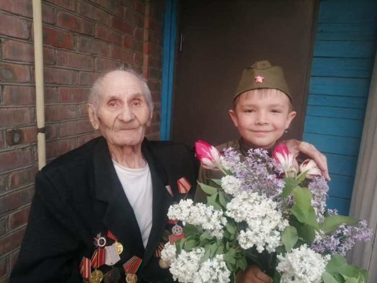 В преддверии Великого праздника Дня Победы мы с моими первоклашками, обучающимися 1 «Б», поздравили ветеранов Великой Отечественной войны (Саланкина Александра Васильевича, 1926 г.р. и Должикова Константина Константиновича, 1926 г.р.) с наступающим праздником и поблагодарили их за их труд, подвиг, благодаря которому мы можем жить, учиться, работать, строить планы на будущее.
