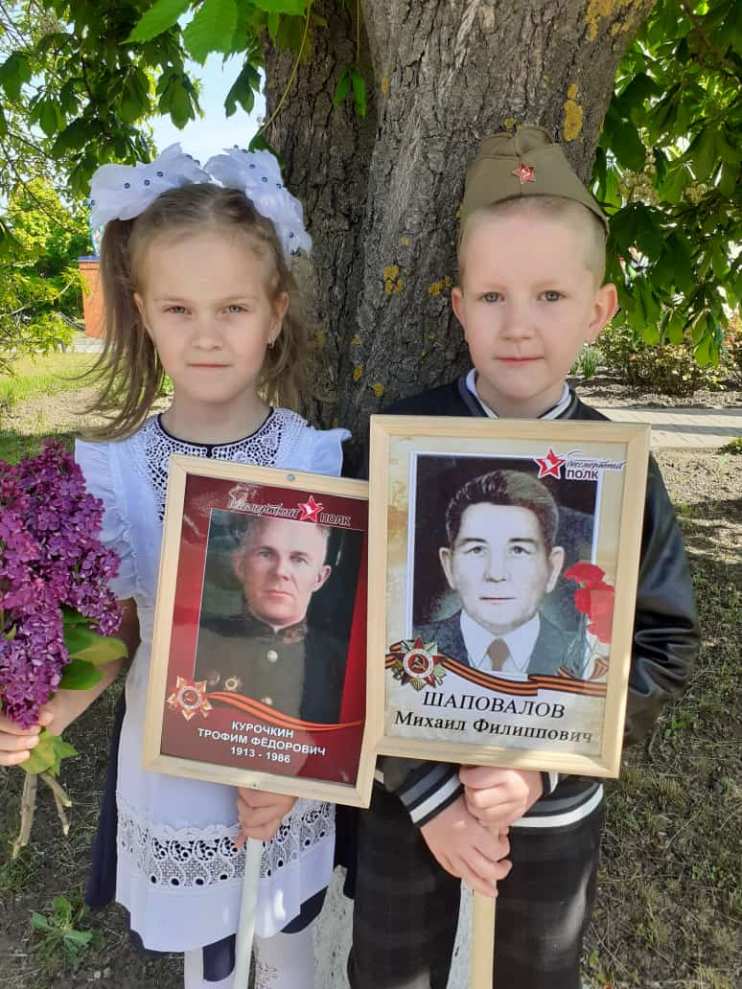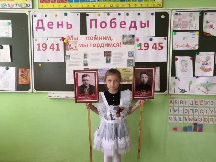 Каждый год я вместе со своими учениками участвую в шествии «Бессмертного полка», неся с гордостью в руках портреты своих родных: дедушки Никифорова Андрея Терентьевича, прадедов Аникеева Михаила Ивановича и Никифорова Терентия Андреевича.