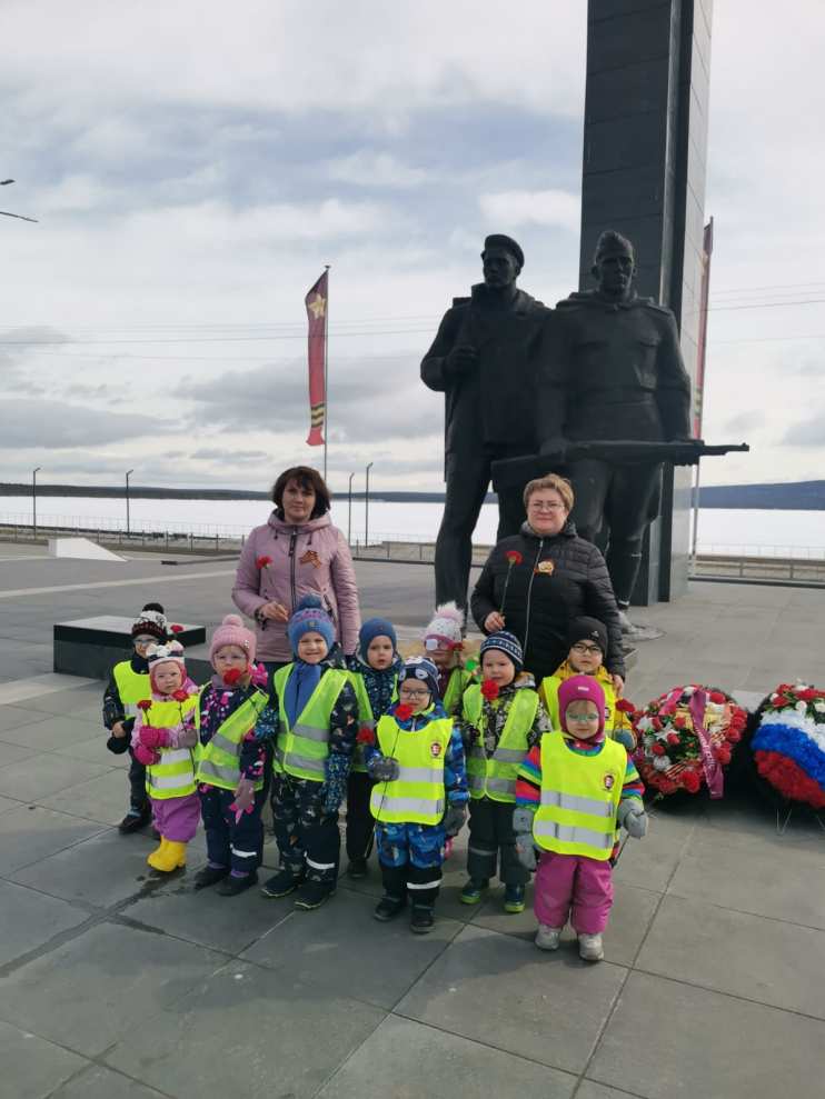 А итогом подготовки к Дню Победы стала экскурсия к Памятнику Защитникам Заполярья, где дети возложили цветы и почтили память героев, защищавших нашу Родину.