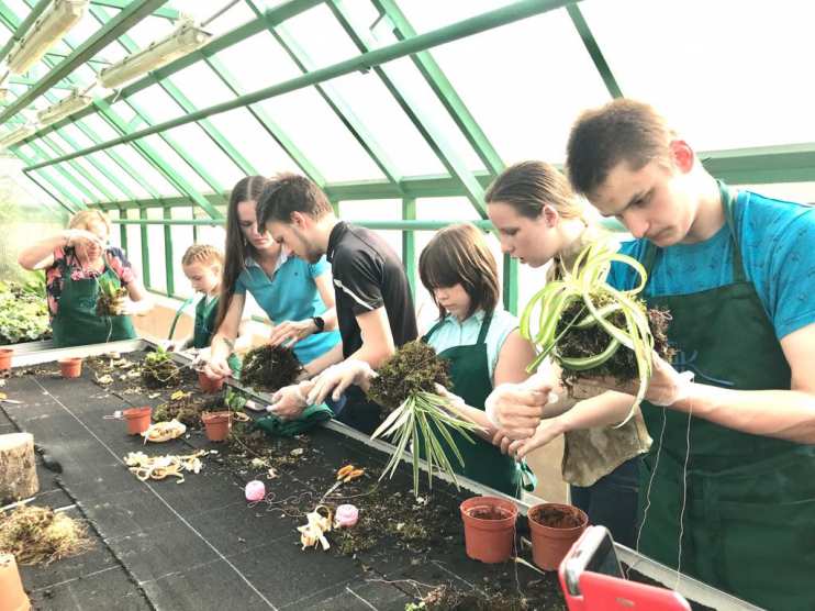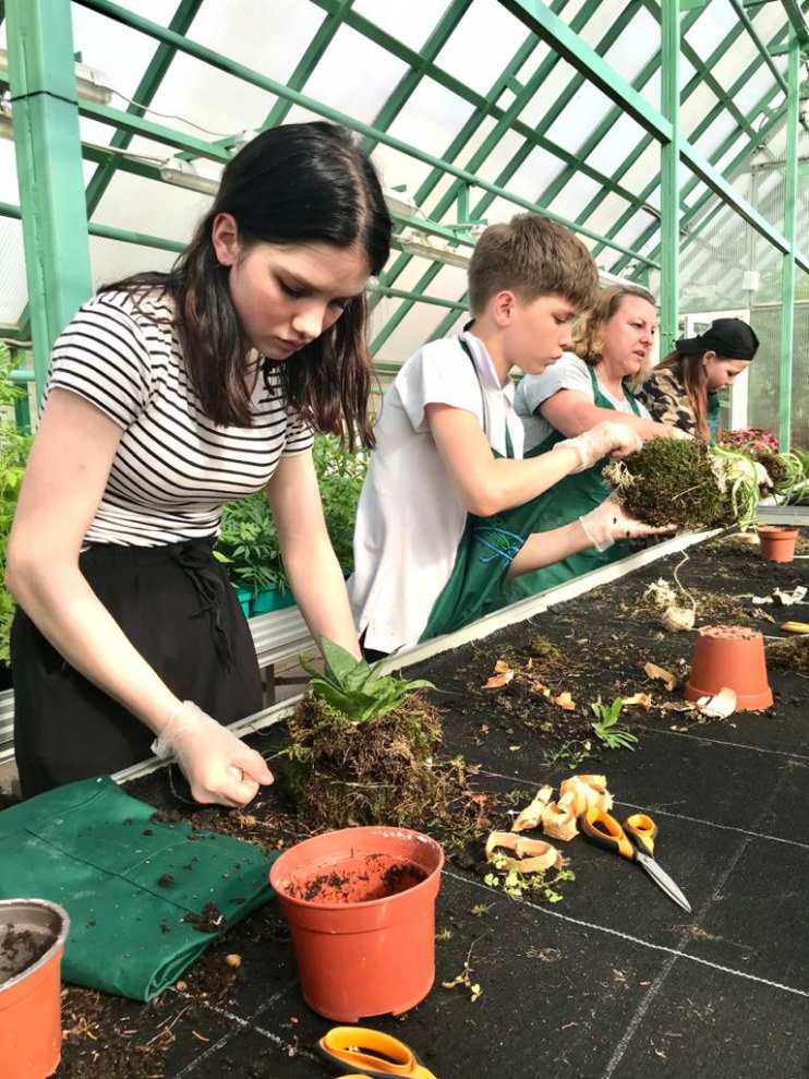 В одной из оранжерей Усадьбы состоялся мастер-класс. Козлова Ирина Николаевна, мастер производственного обучения предложила ребятам создать цветочную композицию Кокедама в традициях японского садоводства. Ребята узнали, какие растения можно для этого использовать, какие условия среды необходимо создать, как оформить цветочную композицию и как за ней ухаживать.