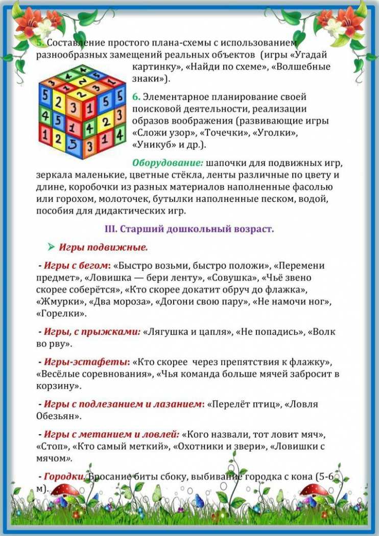 Особенности подвижных игр с правилами в каждой возрастной группе следующие: