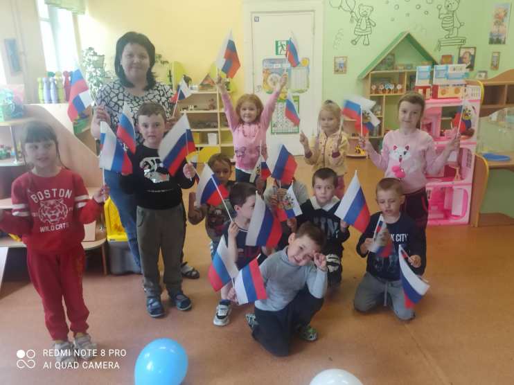 Так, 11 июня в нашем детском саду прошел флешмоб «Вперед, Россия!», участниками которого стали дети и воспитатели всех возрастных групп. Дети совместно с педагогами под веселую задорную музыку выполняли упражнения с флагами и шарами.