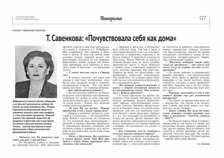 В 2021 году решила пойти по программе "Земский учитель". Уехала в Дагестан. Конечно, здесь произошло много знакомств, в том числе и с корреспондентами. С некоторыми у меня завязалась дружба. Хочу поделиться одной из статей.